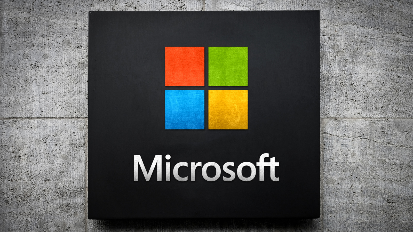 microsoft logo appearing on a stone wall backdrop